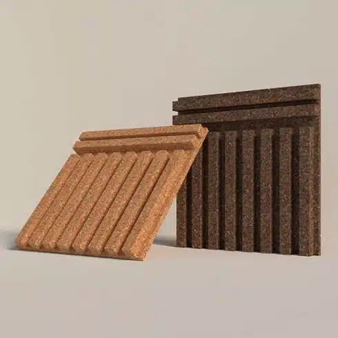 윤리적으로 수확된 100% 천연 코르크는 잔향을 줄이는 동시에 공간에 따뜻함과 바이오필릭한 감성을 더합니다.