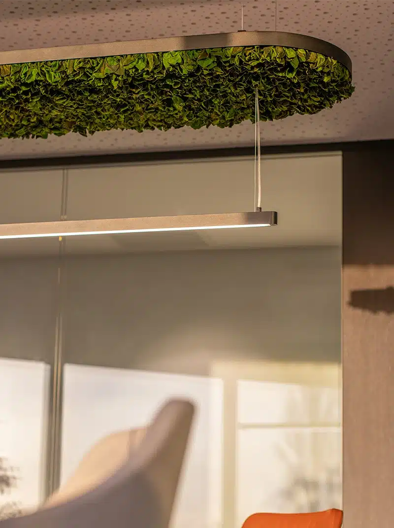 이중 기능 덕분에 시각적 편안함과 함께, 보존된 식물이 지닌 자연적 흡음 성능으로 음향 환경도 향상됩니다.