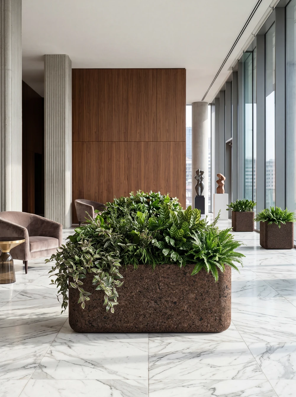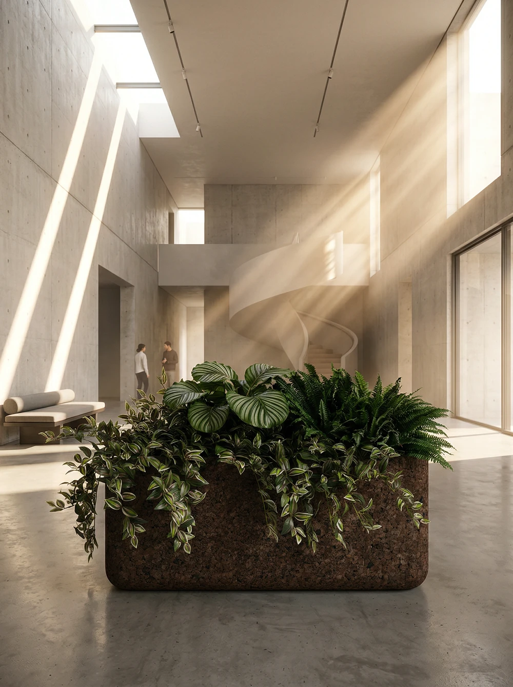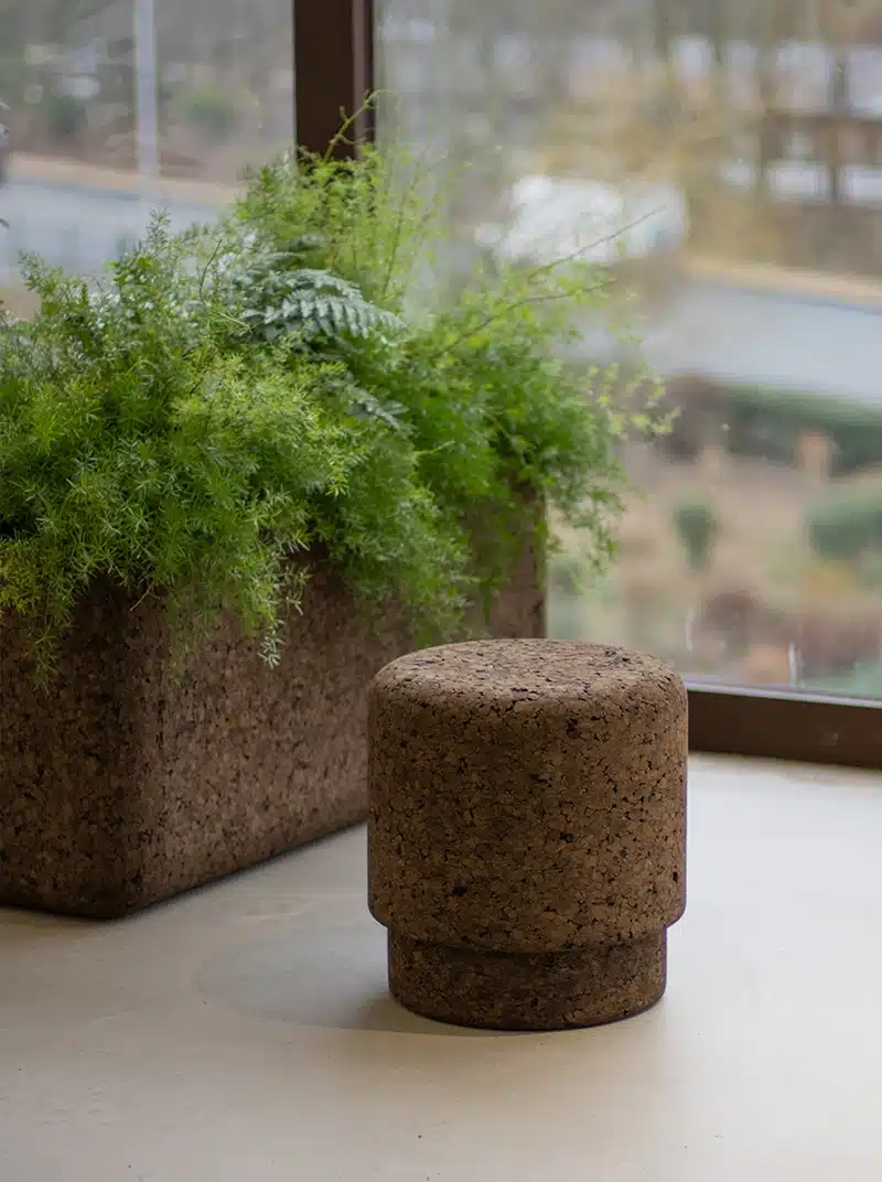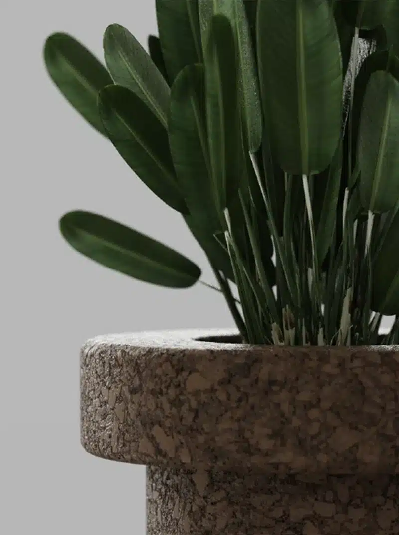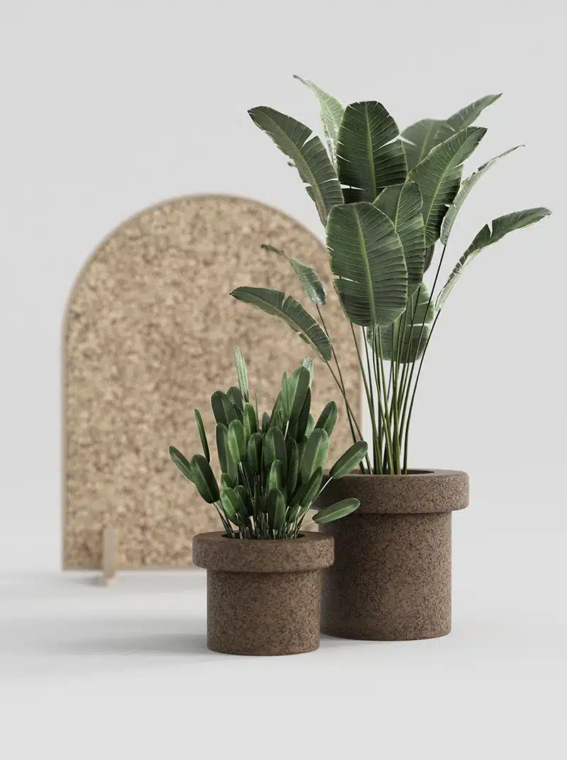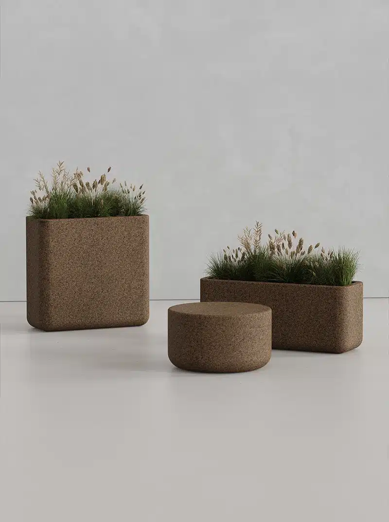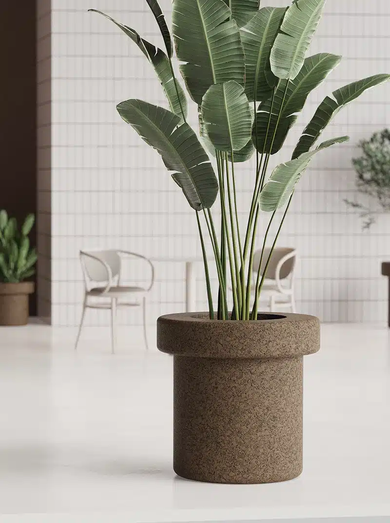 코르크와 섬유 레진은 각기 다른 장점을 통해 Greenmood Planters의 품질을 완성합니다.