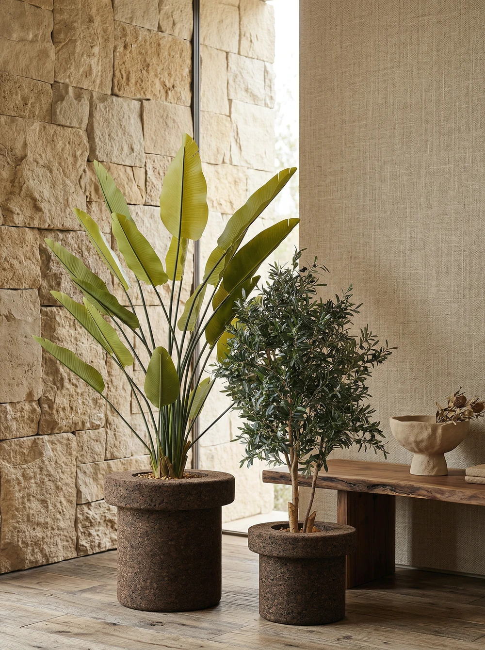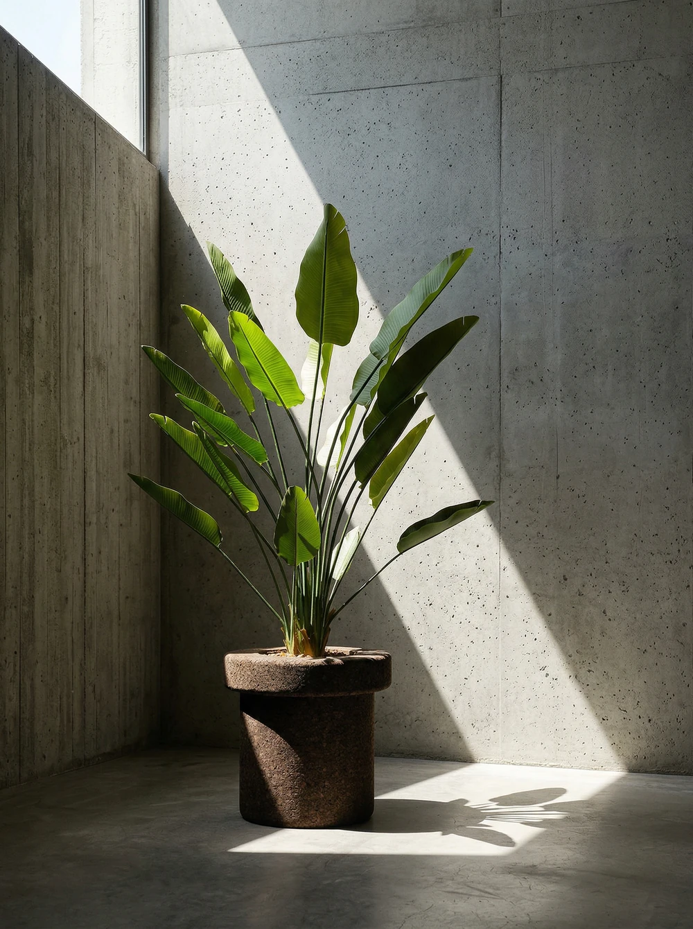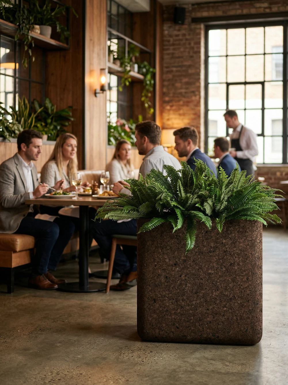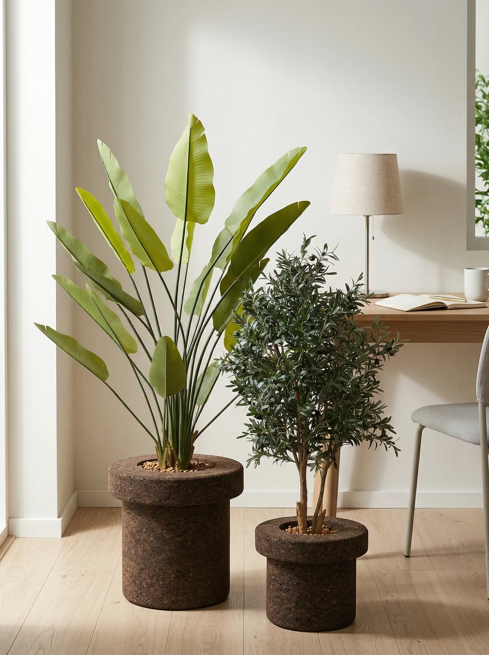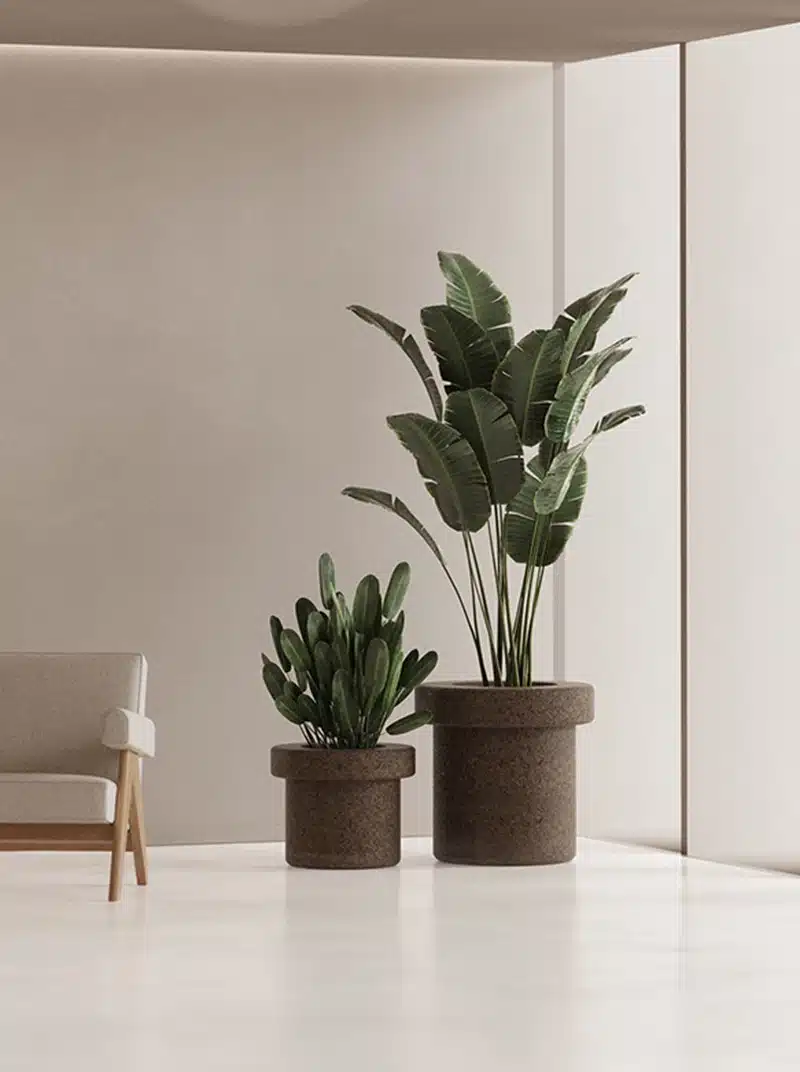 코르크와 섬유 레진은 각기 다른 장점을 통해 Greenmood Planters의 품질을 완성합니다.