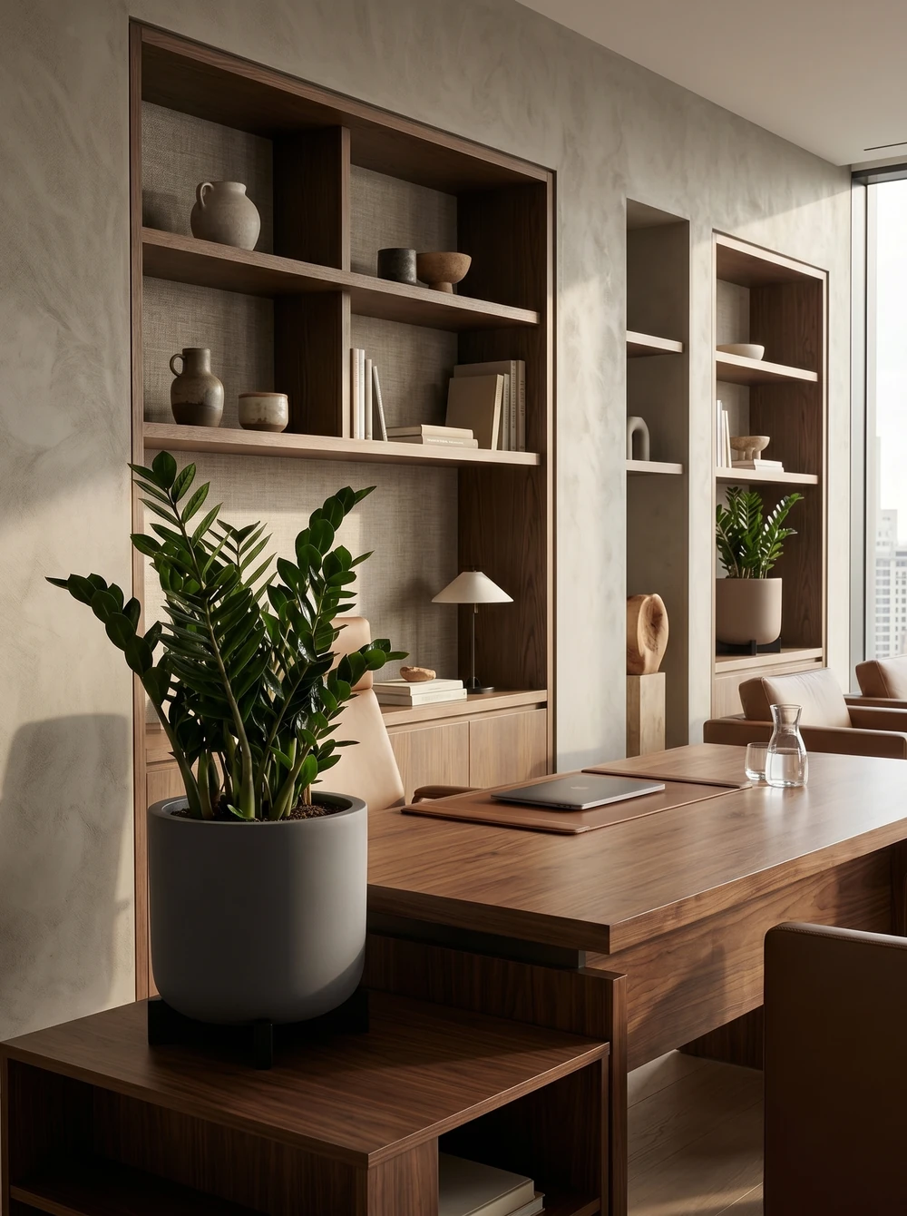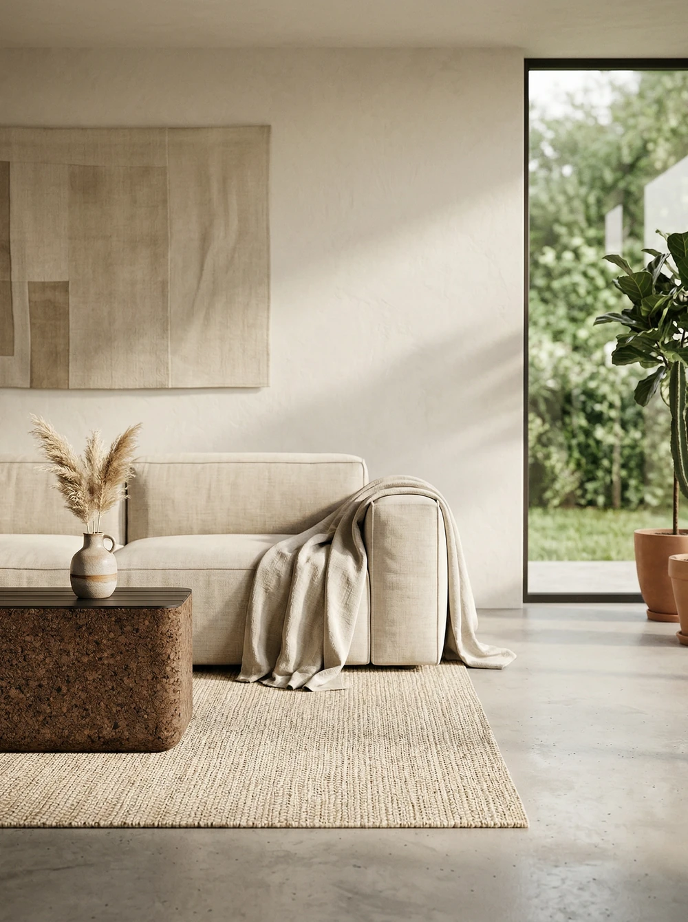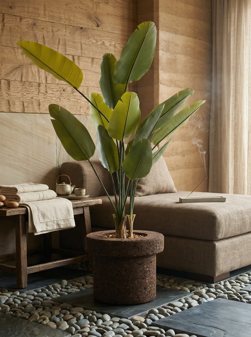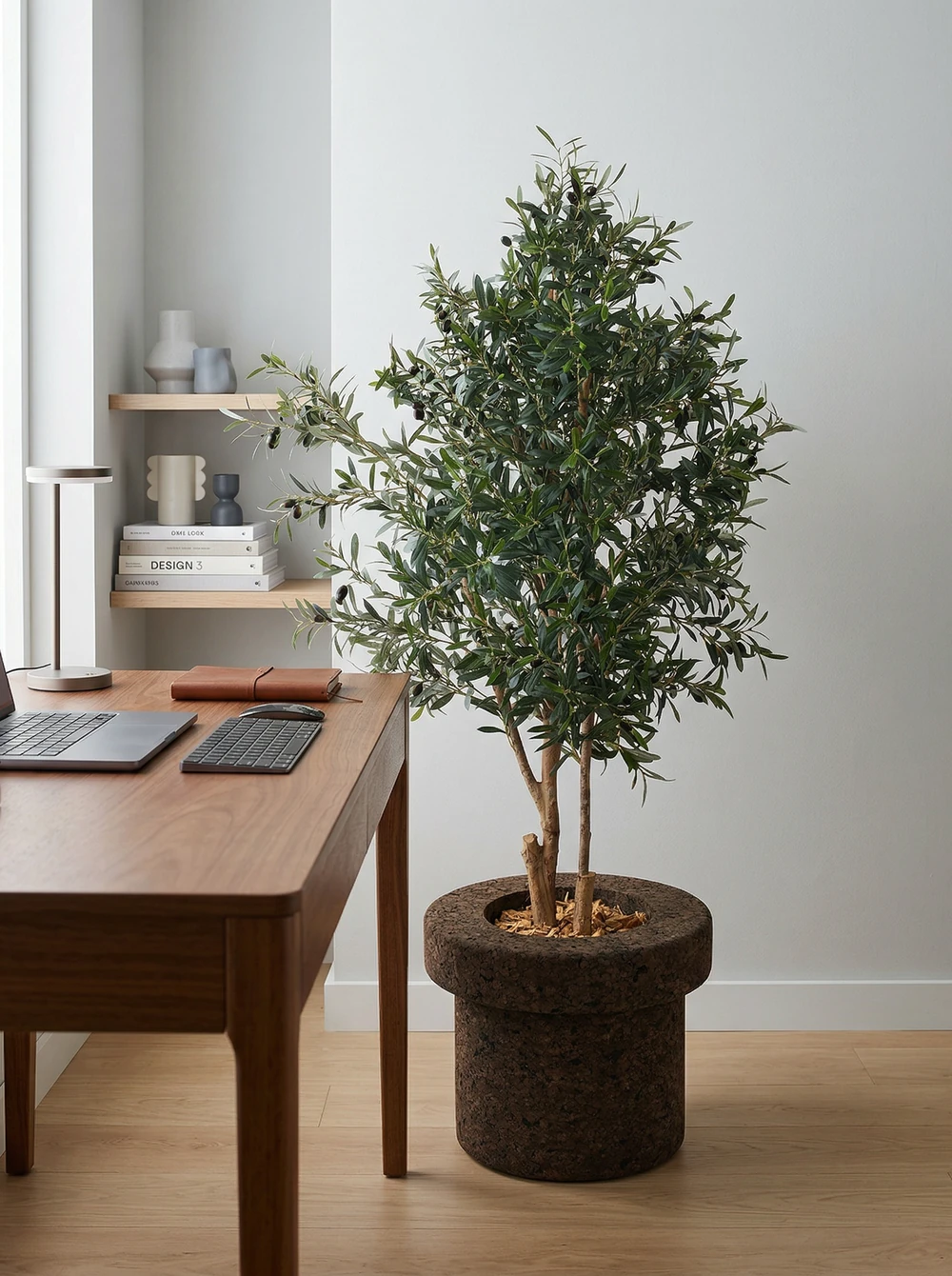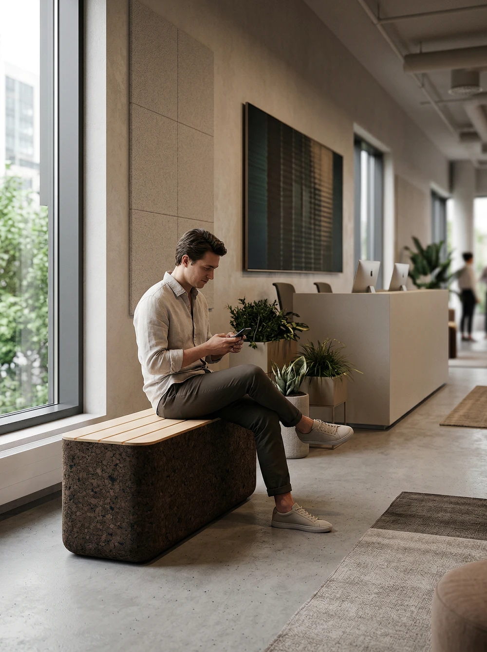가볍고, 재생 가능하며, 소음 흡수 효과가 뛰어나고 사람·반려동물·작업 공간 모두에 안전합니다. 따뜻한 색감은 식물의 녹색과 아름다운 대비를 이룹니다.