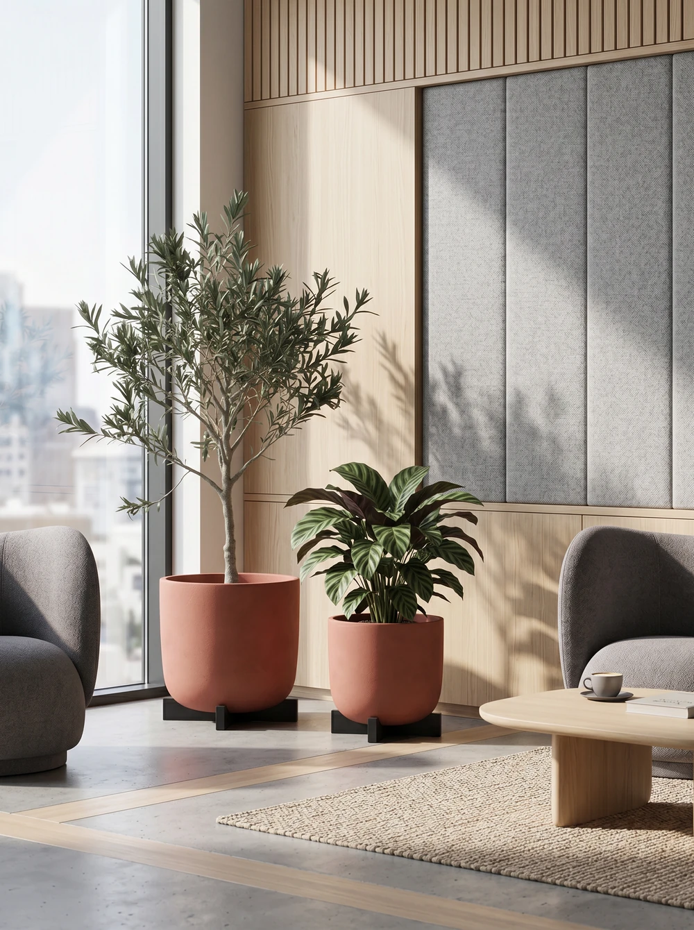 Planters는 미적 가치를 넘어, 공간의 웰빙을 실질적으로 향상시킵니다. 음향적 편안함을 개선하고, 자연스러운 공간 분할과 평온한 녹음을 더하여 더욱 건강하고 영감을 주는 실내 환경을 만들어줍니다.
