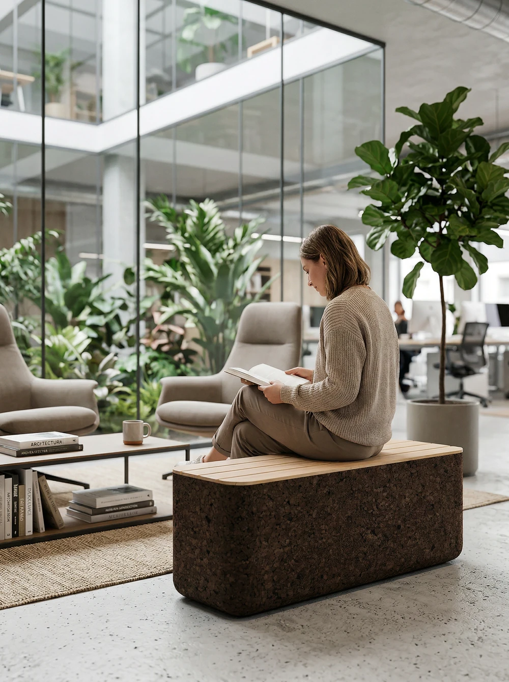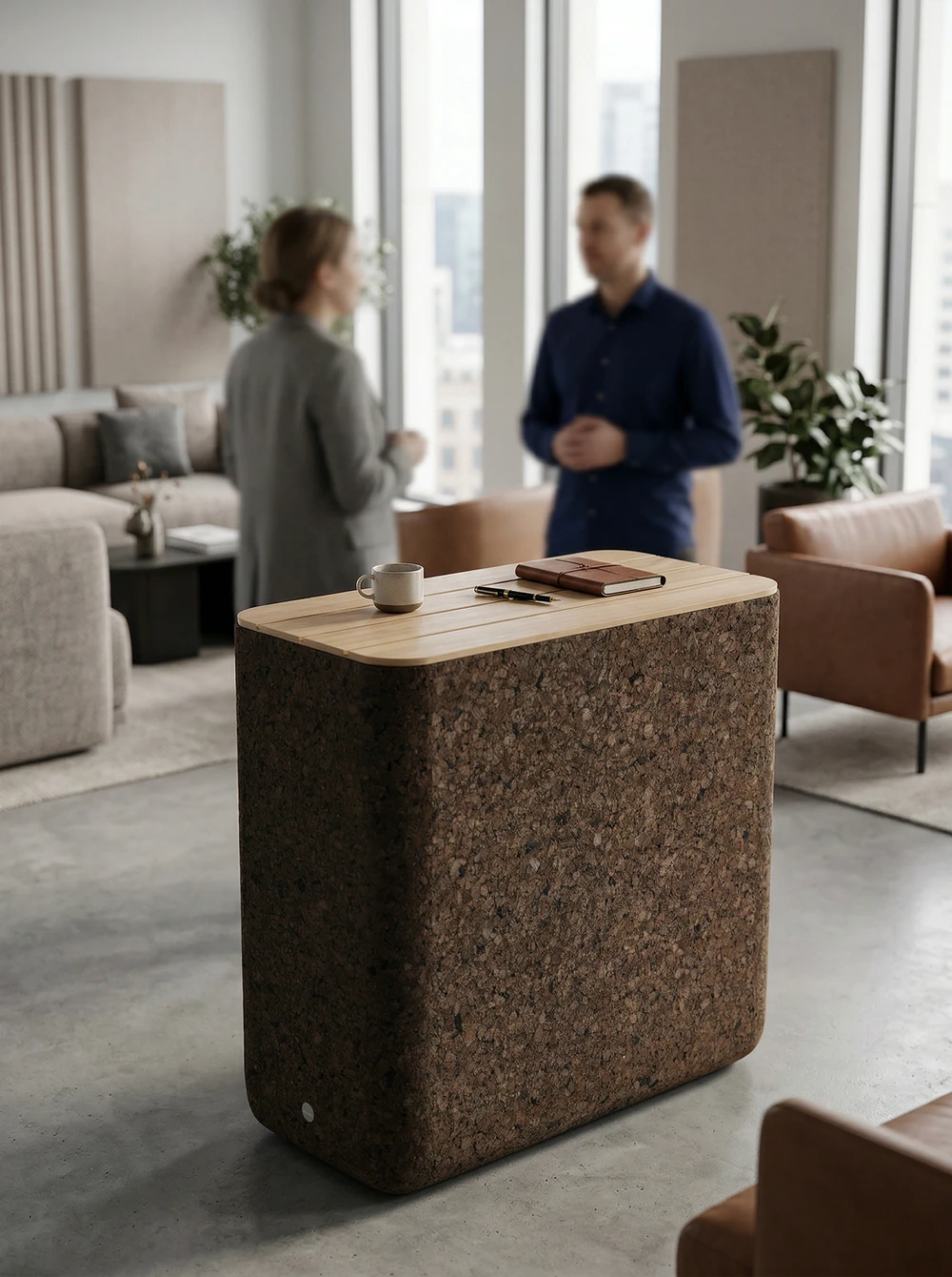 Terra는 재생 가능한 확장 코르크로 제작된 모듈형 실내용 플랜터입니다. 옵션으로 제공되는 오크 뚜껑을 추가하면 벤치나 테이블로 변형할 수 있어, 식물과 기능성을 동시에 제공합니다. 사무실 환경에 이상적이며, 음향적 편안함을 높이고 자연을 실내로 들여옵니다.