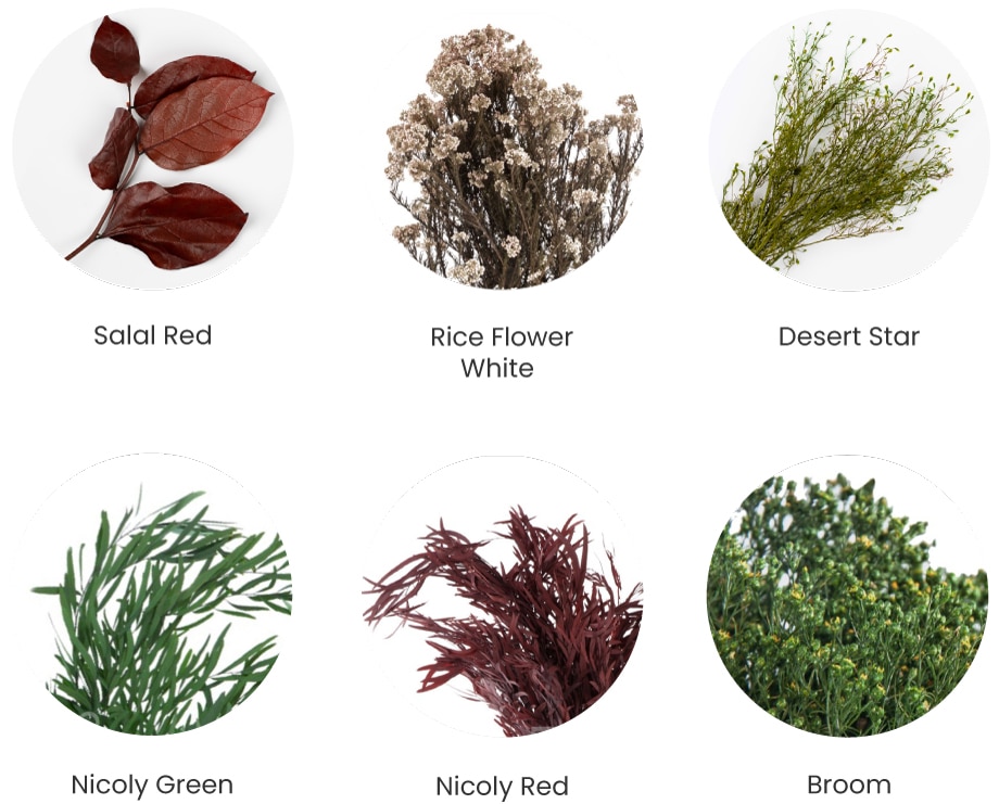 다양한 색상의 보존 식물을 조합해 생동감 있고 균형 잡힌 이미지를 제공합니다. 맞춤 제작 없이도 완성도 높은 결과를 얻을 수 있습니다.